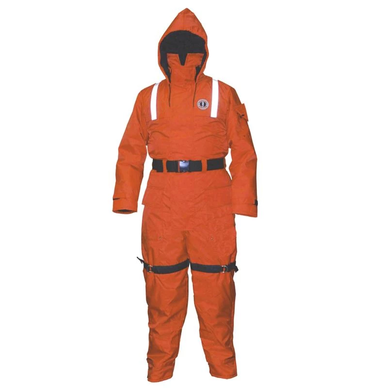 - Hypothermia and flotation protection in a 1-piece suit.