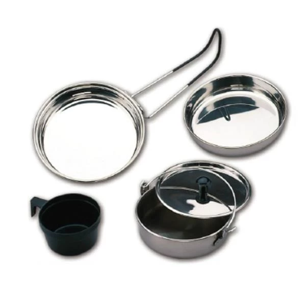 - The classic 5 pieces mess kit upgraded to quality stainless steel.